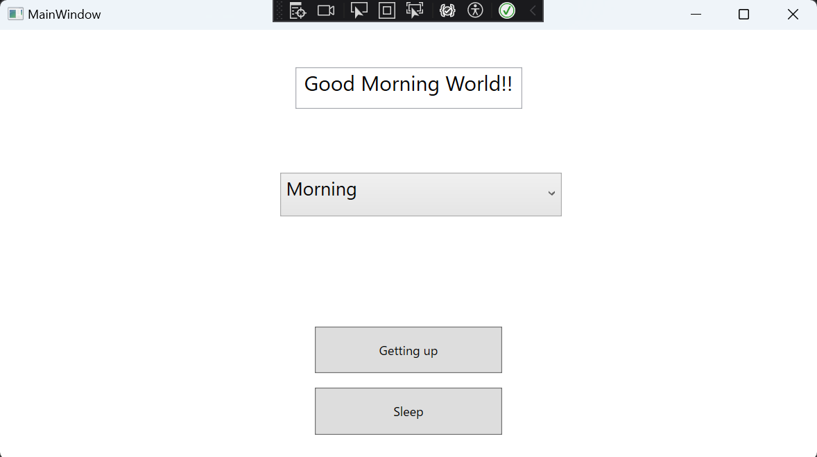 うまくいっていれば、ComboBoxで選択しているテキストに応じて、Getting upボタンを押したときに表示されるテキストが変わっているはずです。